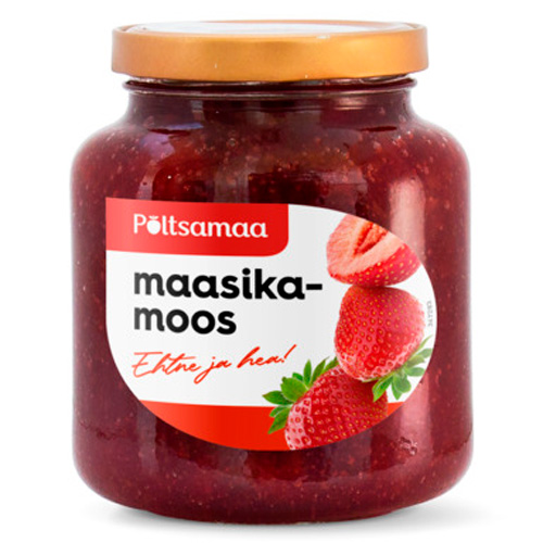 Koostumus: sokeri, mansikka, vesi, hyytelöimisaine (pektiini), happamuudensäätöaine (sitruunahappo), säilöntäaine (kaliumsorbaatti), kiinteyttävä (kalsiumkloridi). 100g tuotteessa: marjoja 40g, sokeria 50g, energiaa 205 kcal / 872 kJ, proteiinia 0,7 g, hiilihydraattia 50,6 g, rasvaa 0 g, kuitu 1,6 g, natrium 0,007 g.